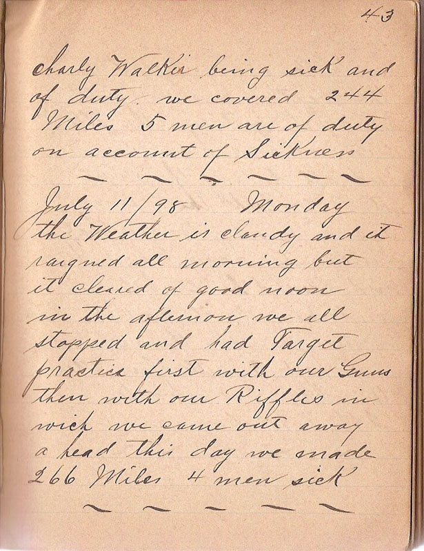 charley Walker being sick and of duty we covered 244 Miles 5 men are of duty on account of Sickness