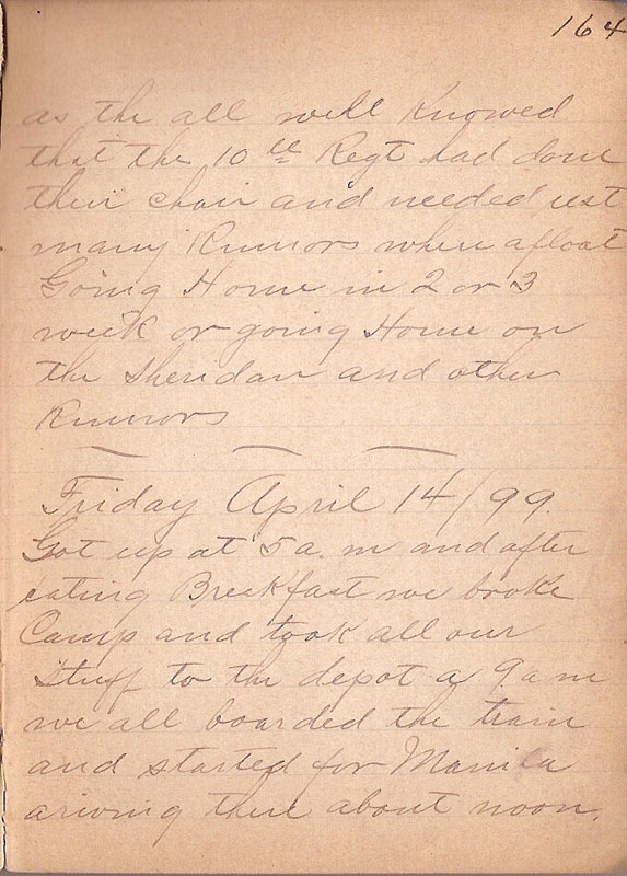 as the all well Knowed that the 10th Regt had done their chair and needed rest many Rumors where afloat Going Home in 2 or 3 week or going Home on the Sheridan and other Rumors