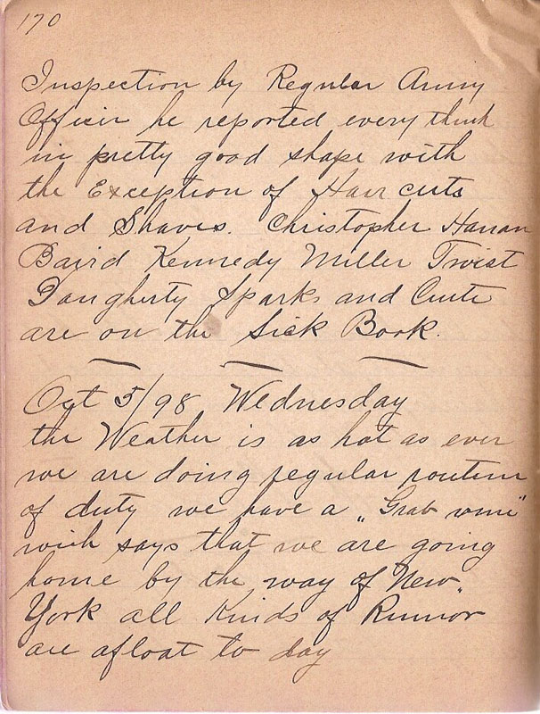 Inspection by Regular Army Officer he reported every think in pretty good shape with the Exception of Hair cuts and Shaves Christopher Hanan Baird Kennedy Miller Twist Daugherty Sparks and Cuite are on the Sick Book