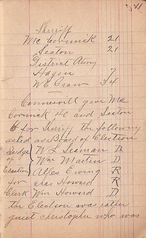 Connesvill gave McCormick 40 and Seaton 6 for Sherriff the following acted as a Board of Election