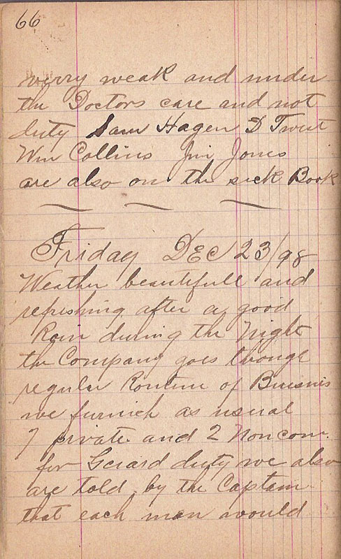 verry weak and under the Doctors care and not duty Sam Hagen D Twist Wm Collins Jno Jones are also on the sick Book